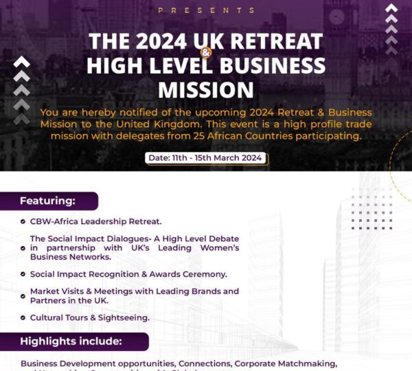 The Commonwealth Business Women Africa (CBW-Africa) is set to host her strategic retreat and business mission to the United Kingdom from March 11th to 15th, 2024. This exclusive event open to delegates from 25 African countries offers a packed schedule of events and opportunities for growth and connection.